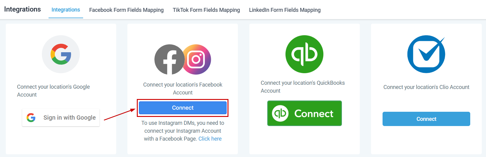 Integrating your Facebook and Instagram accounts enhances your social media management and improves your ability to track and engage with leads effectively. This process ensures that your accounts are synchronized and fully connected, allowing for seamless interaction and efficient data management. Follow the steps outlined below to establish and manage this integration, ensuring that your social media activities and lead data are consistently updated and accurately reflected in your CRM.