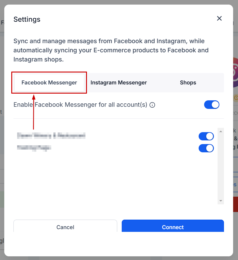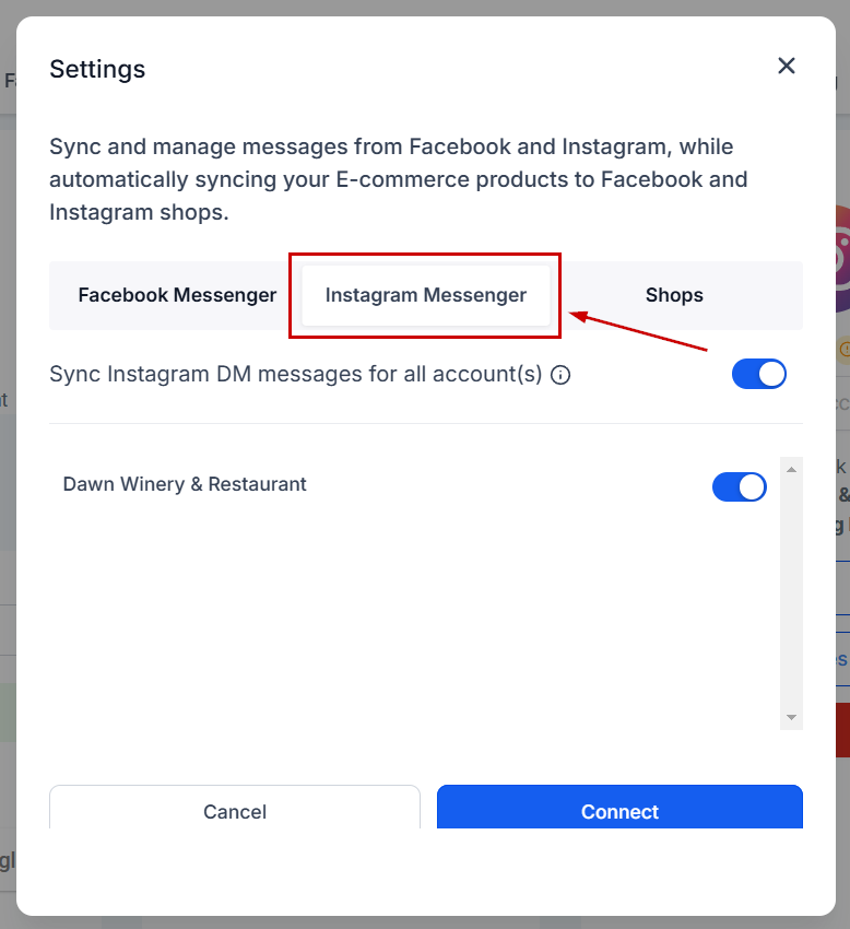 If you have a Facebook/Instagram Shop connected you can manage the messages and E-commerce products in this tab.