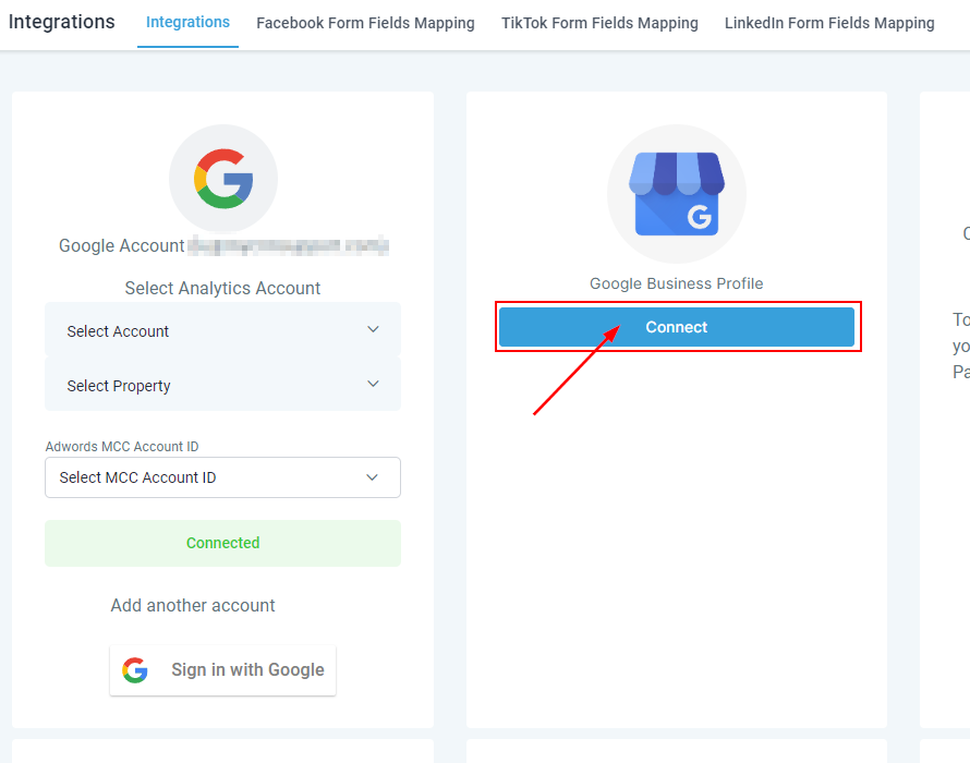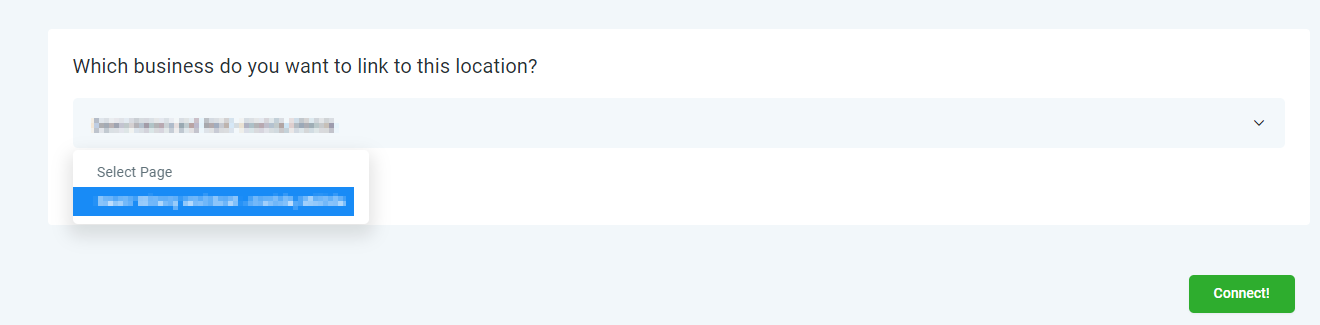 You will then be able to pick which Google My Business account you'd like to attach to this CRM location, and then you can go ahead and hit Connect.