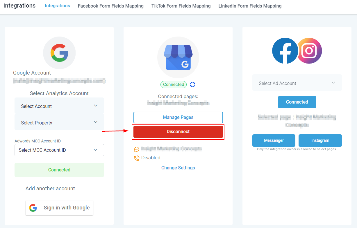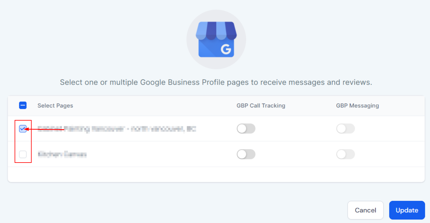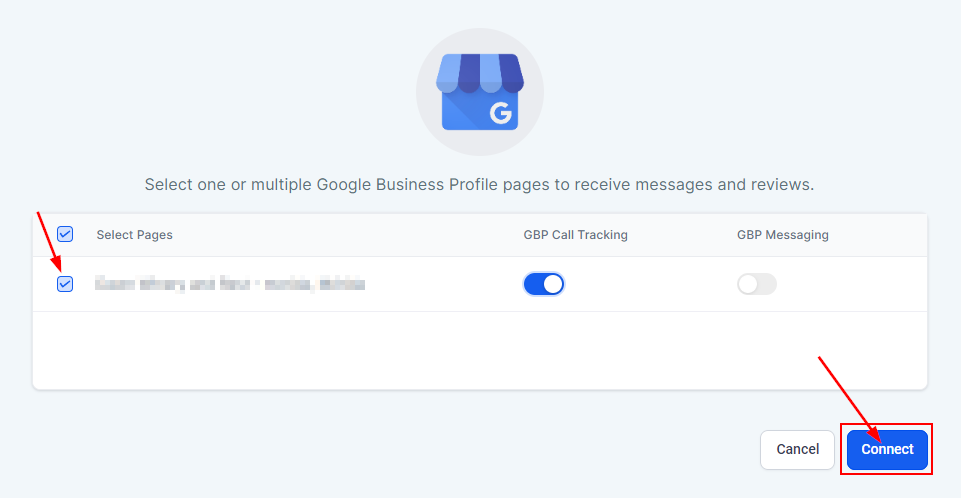 Once you connect your Google Accounts, empower yourself to use the power of Google My Business! With this connection, you can manage all GMB messaging right inside your CRM. Call tracking will establish a unique tracking phone number and attach it to your GMB location. This method separates traditional customer phone calls from more organized interactions inside your CRM—bringing everything into one streamlined digital process.When you connect a Google Account for the first time a pop-up window will open for you to select the page you'd like to connect.