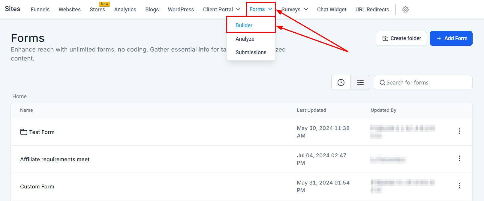 Navigate to the Form Builder: Access the section of the CRM where you create and manage forms.