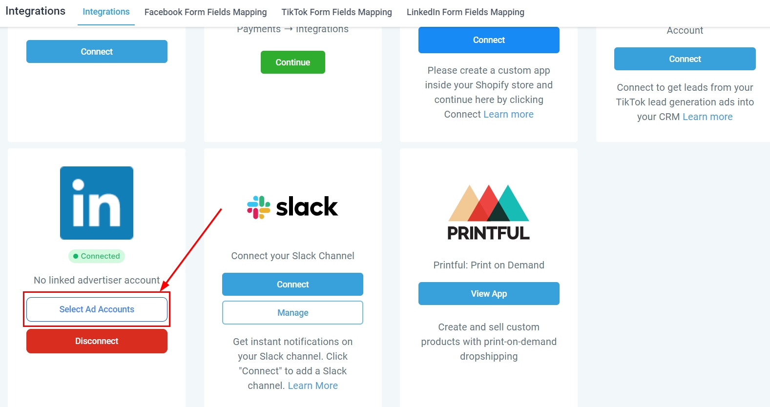Once connected, select the LinkedIn ad account you wish to integrate.