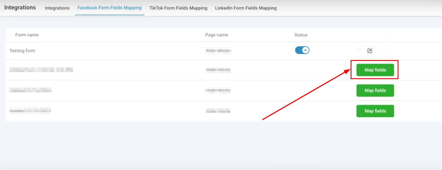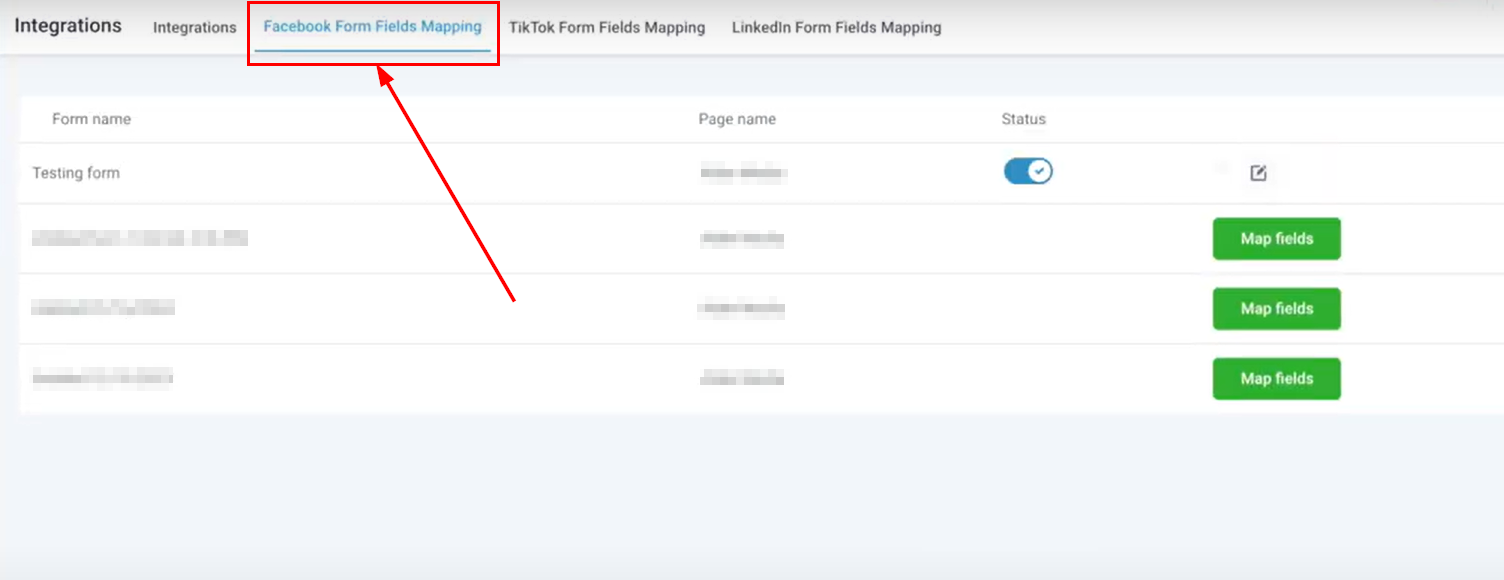 Begin by accessing the Integrations section. You manage all connections between your CRM and external platforms such as Facebook in this area. Within this section, locate and select the Facebook Form Fields Mapping tab. This tab provides an overview of the Facebook forms currently connected to your integrated page.