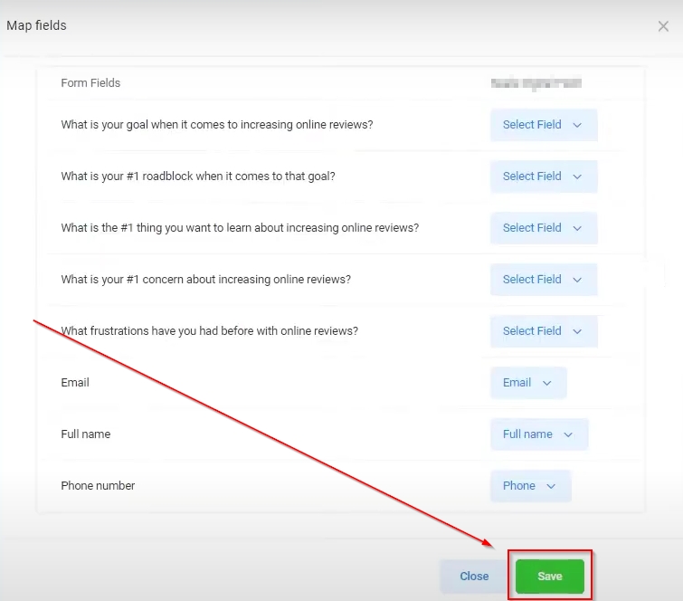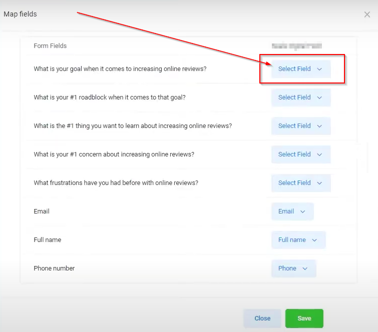 By clicking the “Select Field” dropdown, you will see the fields you have created that can be mapped to the corresponding fields in your Facebook form. Properly aligning these fields ensures a seamless transfer of data between the two platforms.