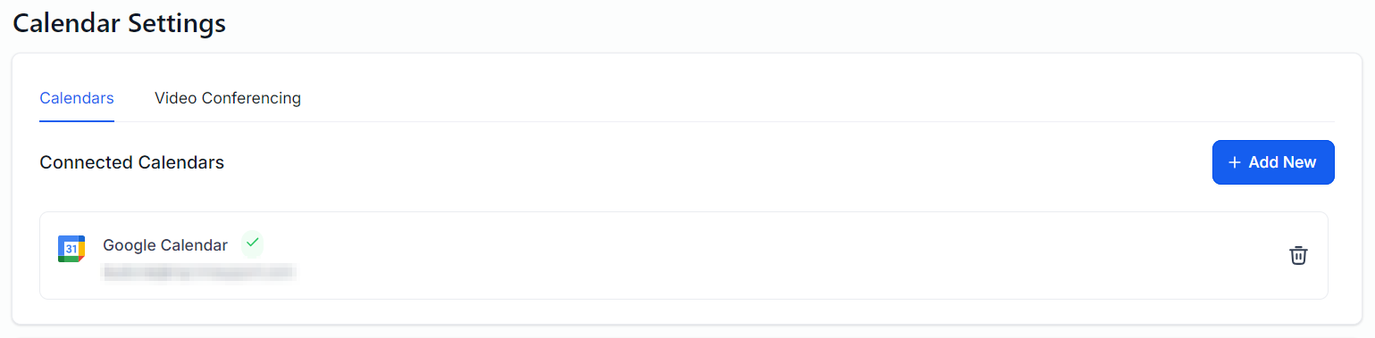 If a calendar was already connected, the Calendar Settings will look similar to the image below: