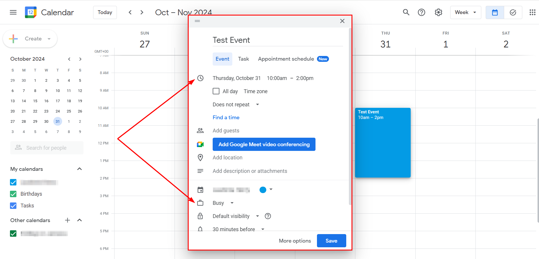 Create a Test Event in Google Calendar