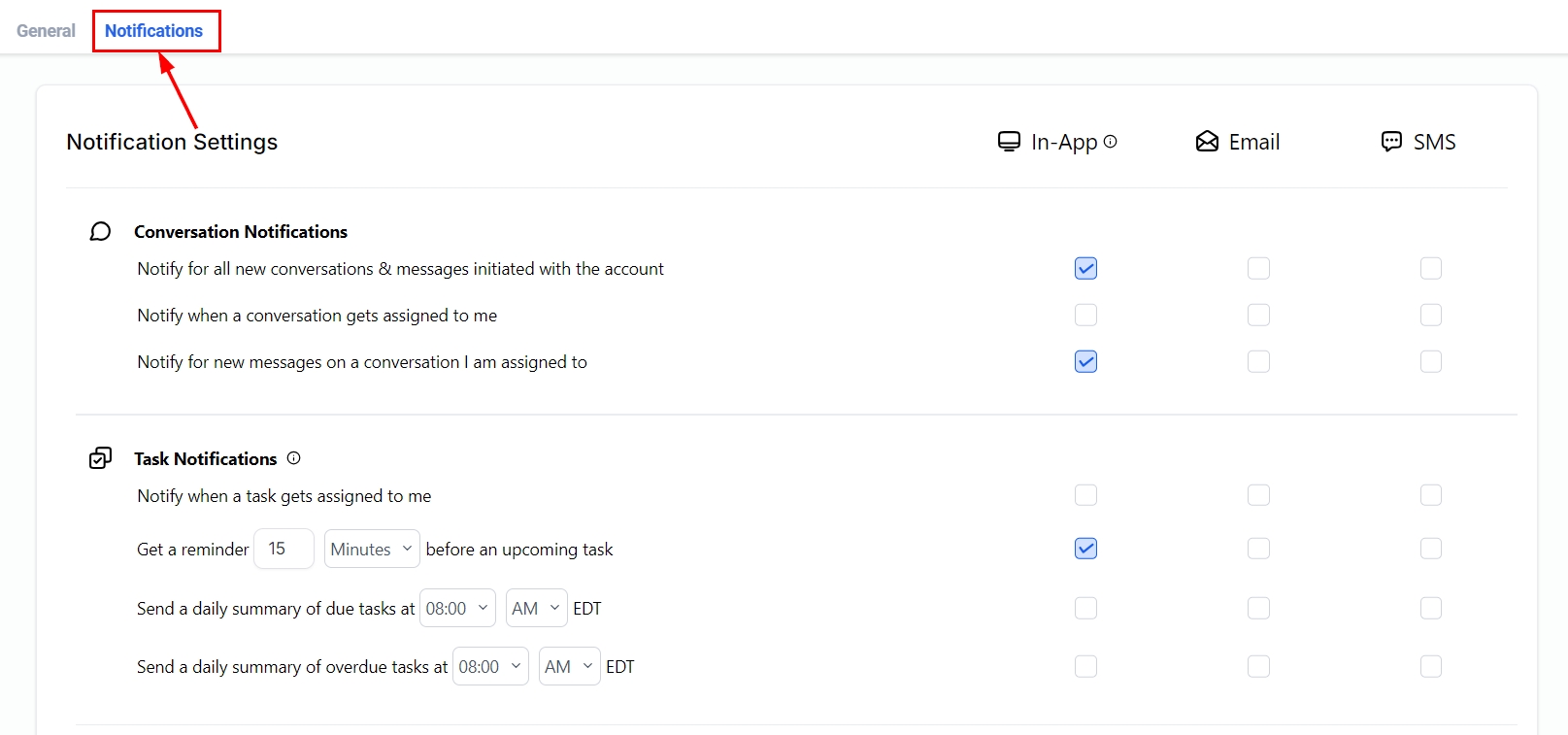 Under Task Notifications, enable daily summary reminders and set up your preferred time of the day for receiving these notifications.