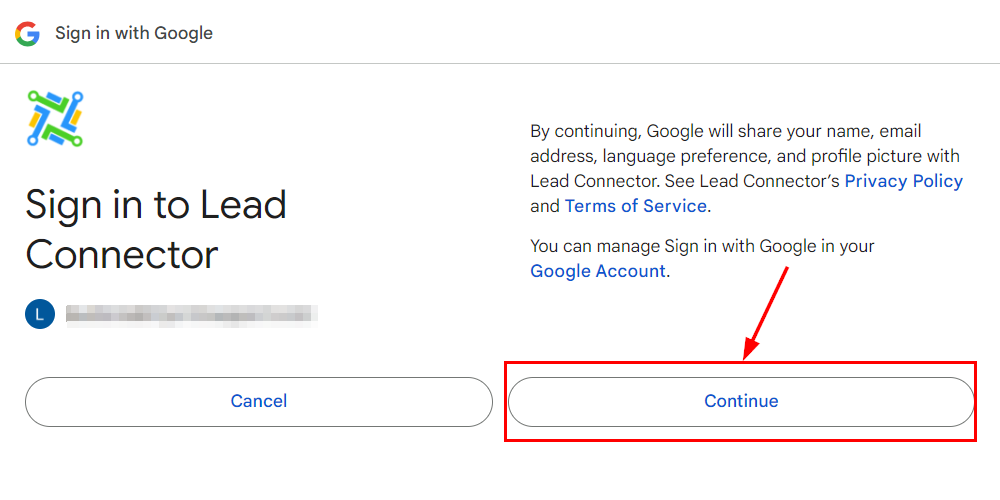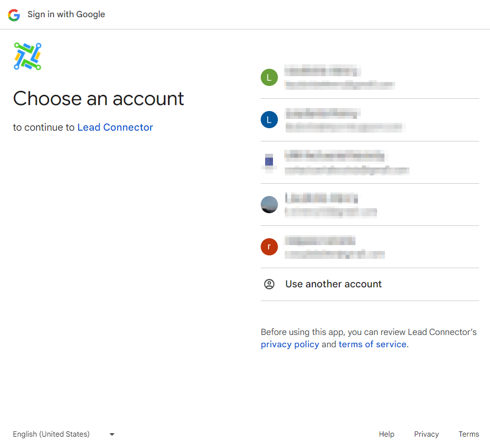 A new page will open, prompting you to select the Google account you wish to integrate.
