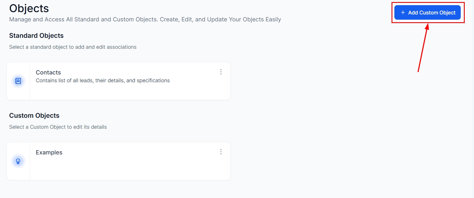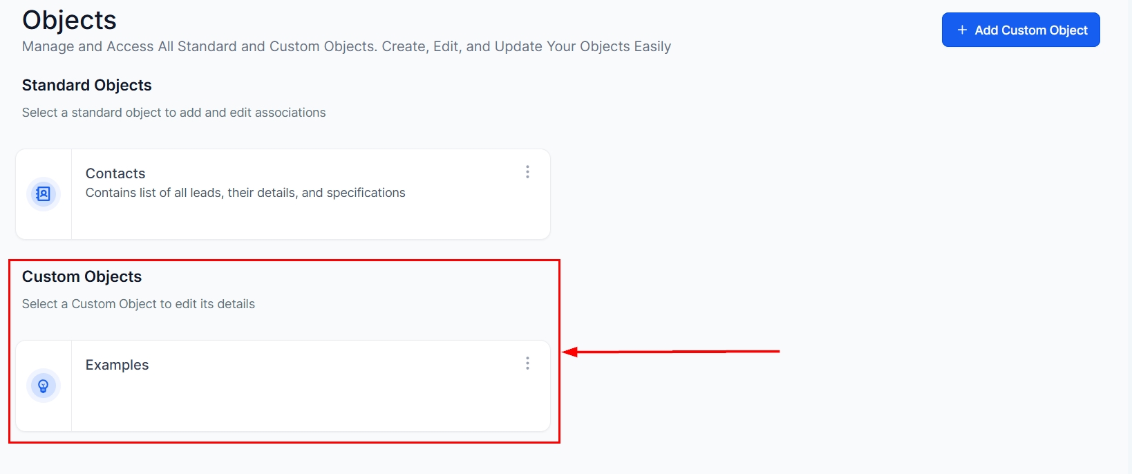 Objects enable users to organize, filter, and visualize information according to their operational needs, greatly enhancing data management and offering a more customized and efficient way to handle intricate data. The Objects section in your account allows you to access and manage all Standard and Custom Objects efficiently.