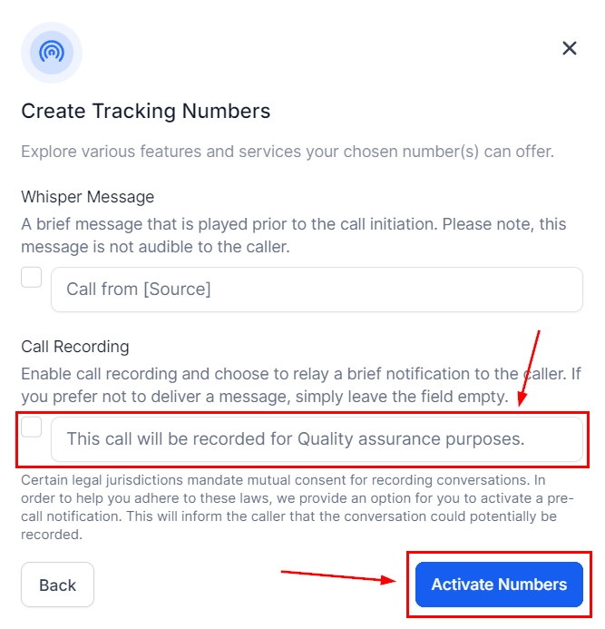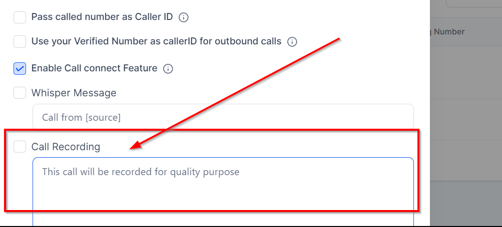 Scroll down towards the “Call recording” option and check the box. There you have enabled the call recording for this phone number.
