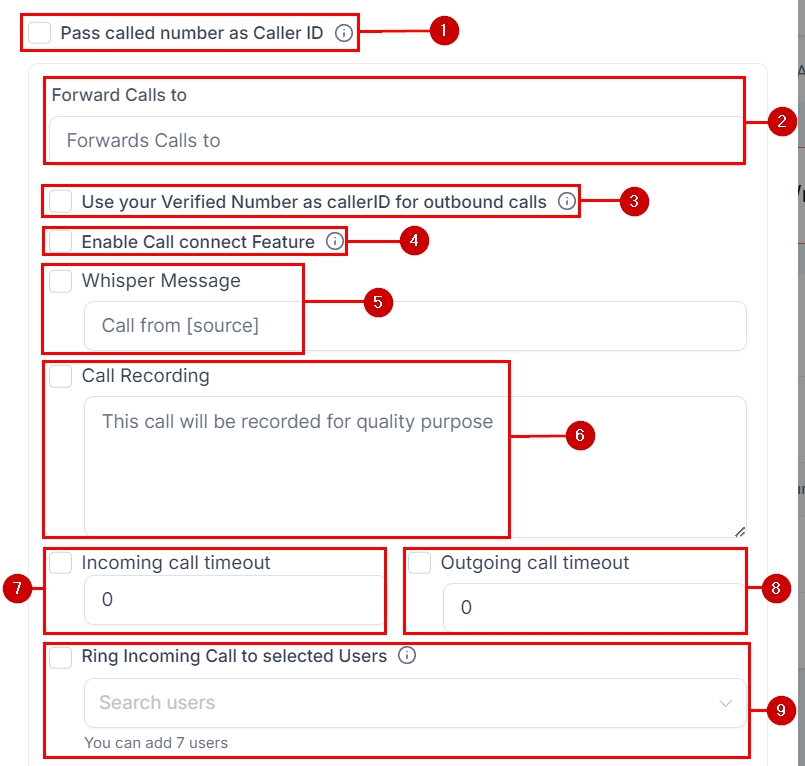 Pass called number as Caller ID: This shows the number that you are calling as the ID