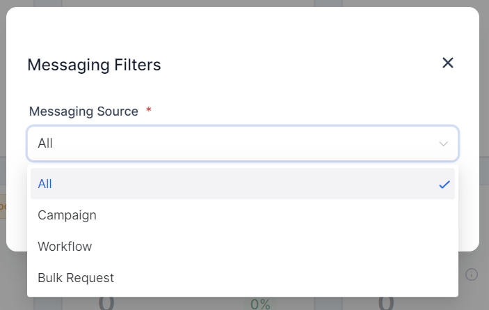 You can filter the results by changing the dates covered or clicking the Filters button. With Filters, you can limit the messages it shows from all to messages from a specific Campaign, Workflow, or Bulk Request.