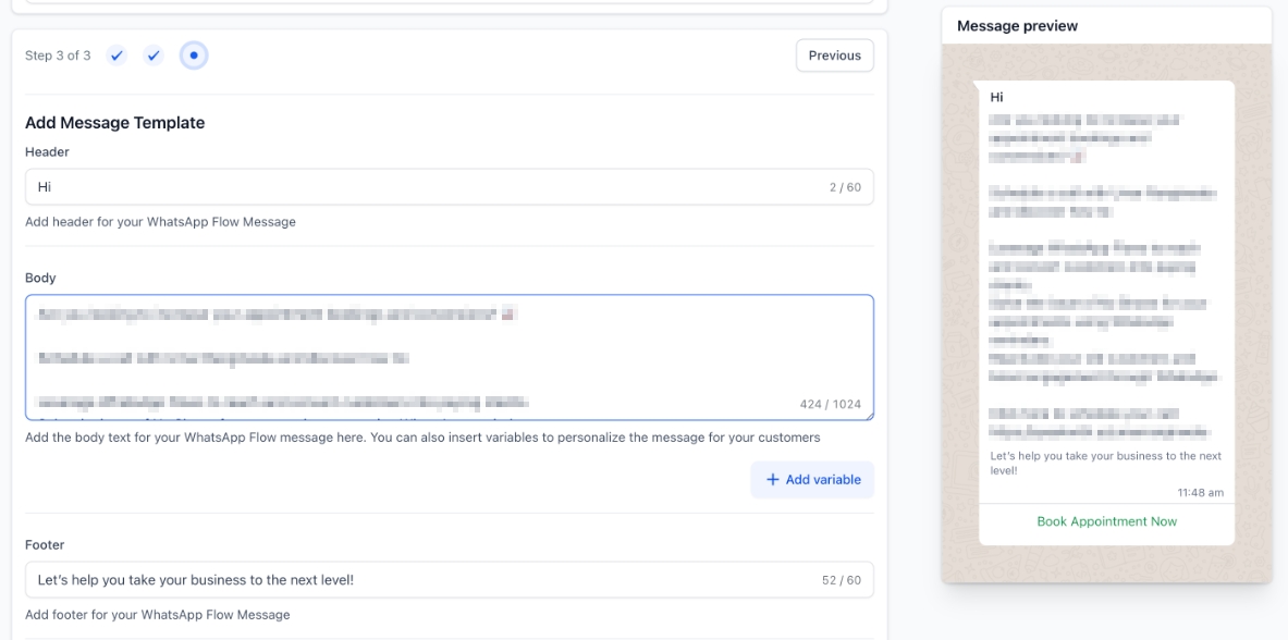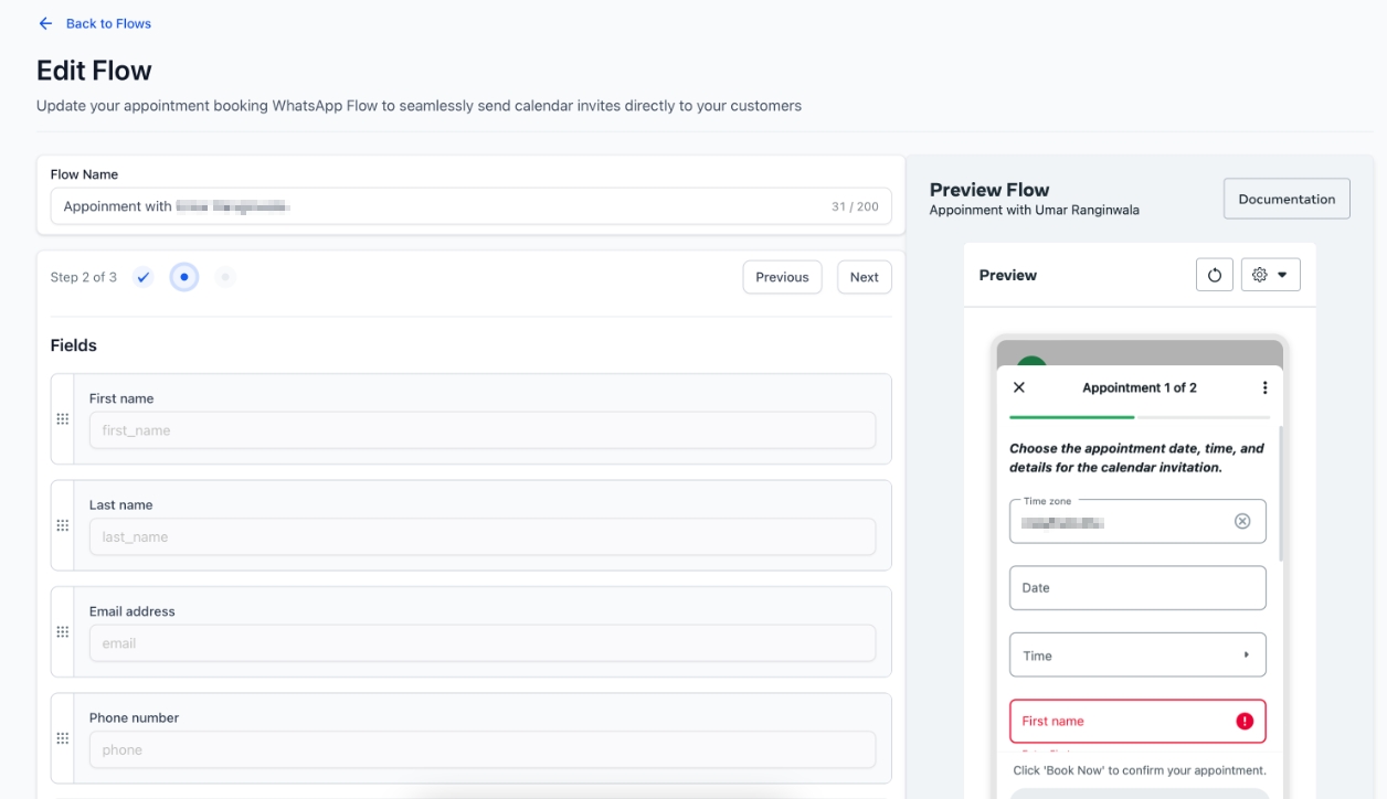 Booking directly through WhatsApp encourages immediate action from your contacts, providing them the comfort of pre-filled details which ensures a seamless experience. Using this feature allows you to create interactive, guided conversations that simplify the appointment scheduling experience, reducing drop-offs and boosting booking rates.