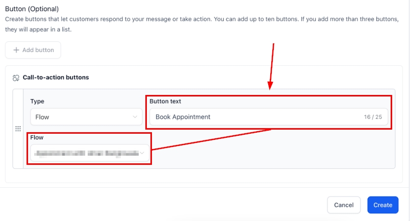 Add your Button Text and select the desired Flow. Once ready click Create to save your changes.