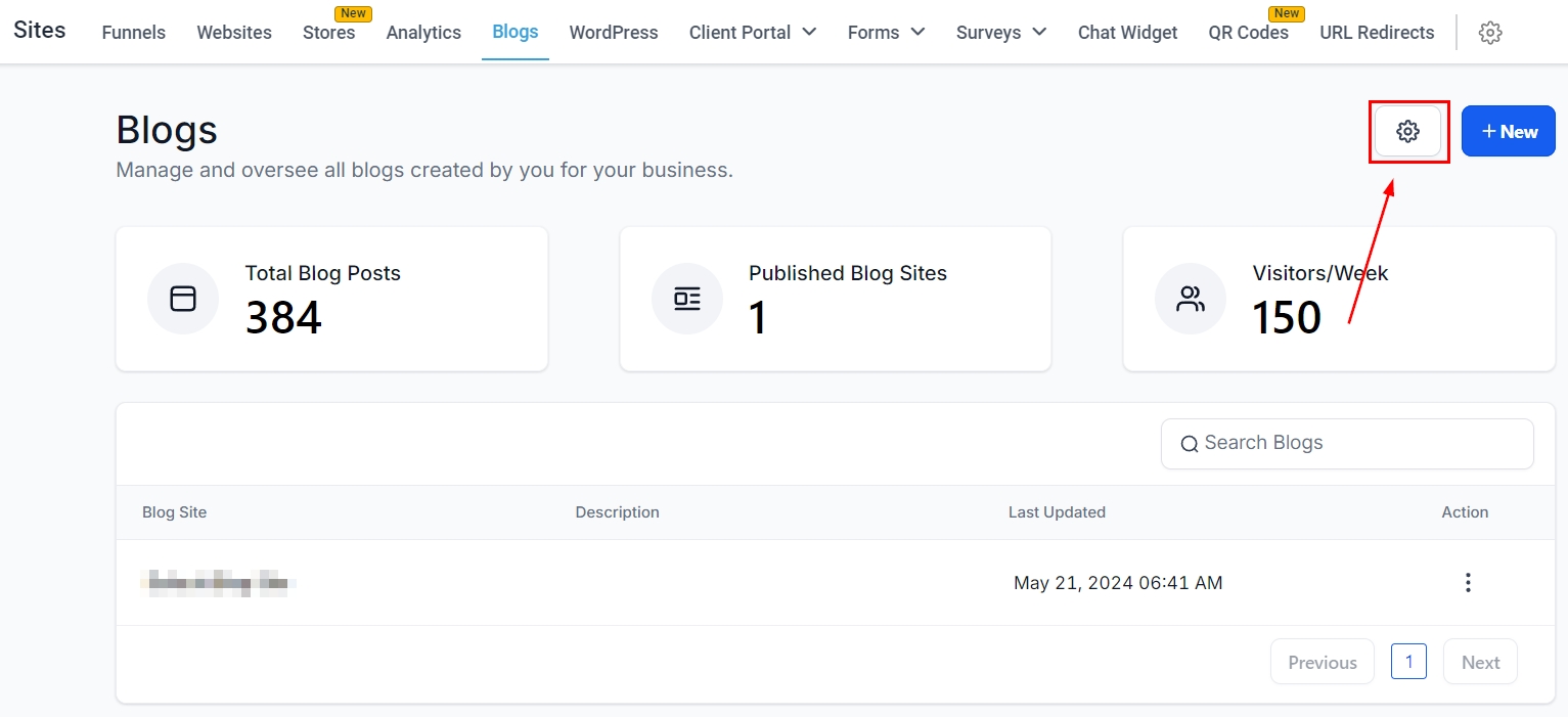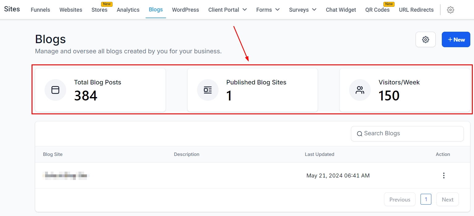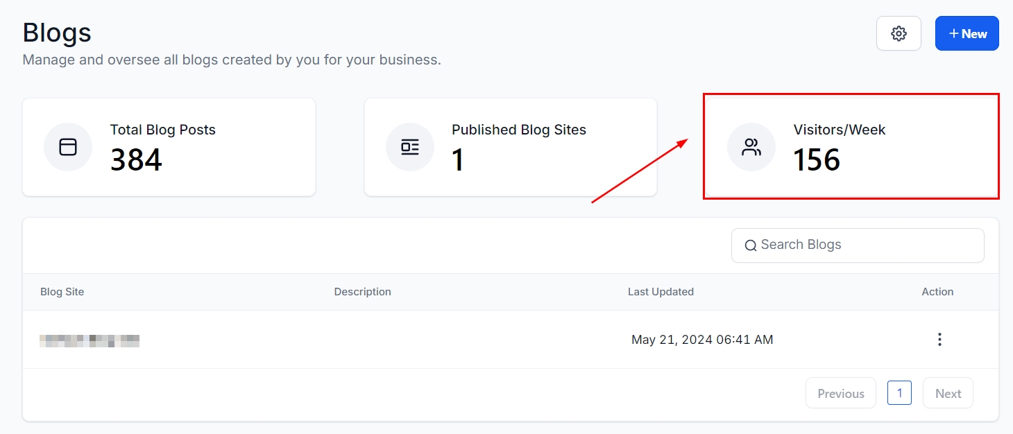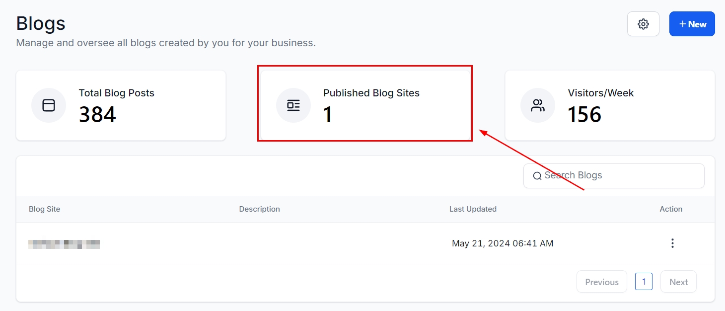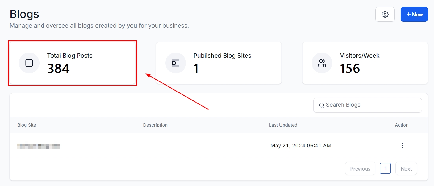 Whether you are starting your website or have a good library already Blog posts can lend you a hand in building interest in your business and creating a hotspot for engagement. These pieces of content let you grow confidence in your business and a point of reliability and comprehension between you and your potential clients. So, let's look at the Blogs tab.