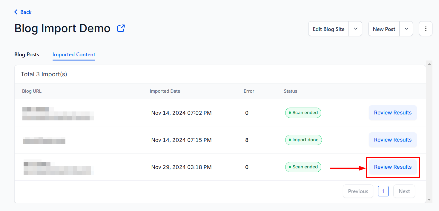 View all posts imported as drafts, allowing for further review before publication.