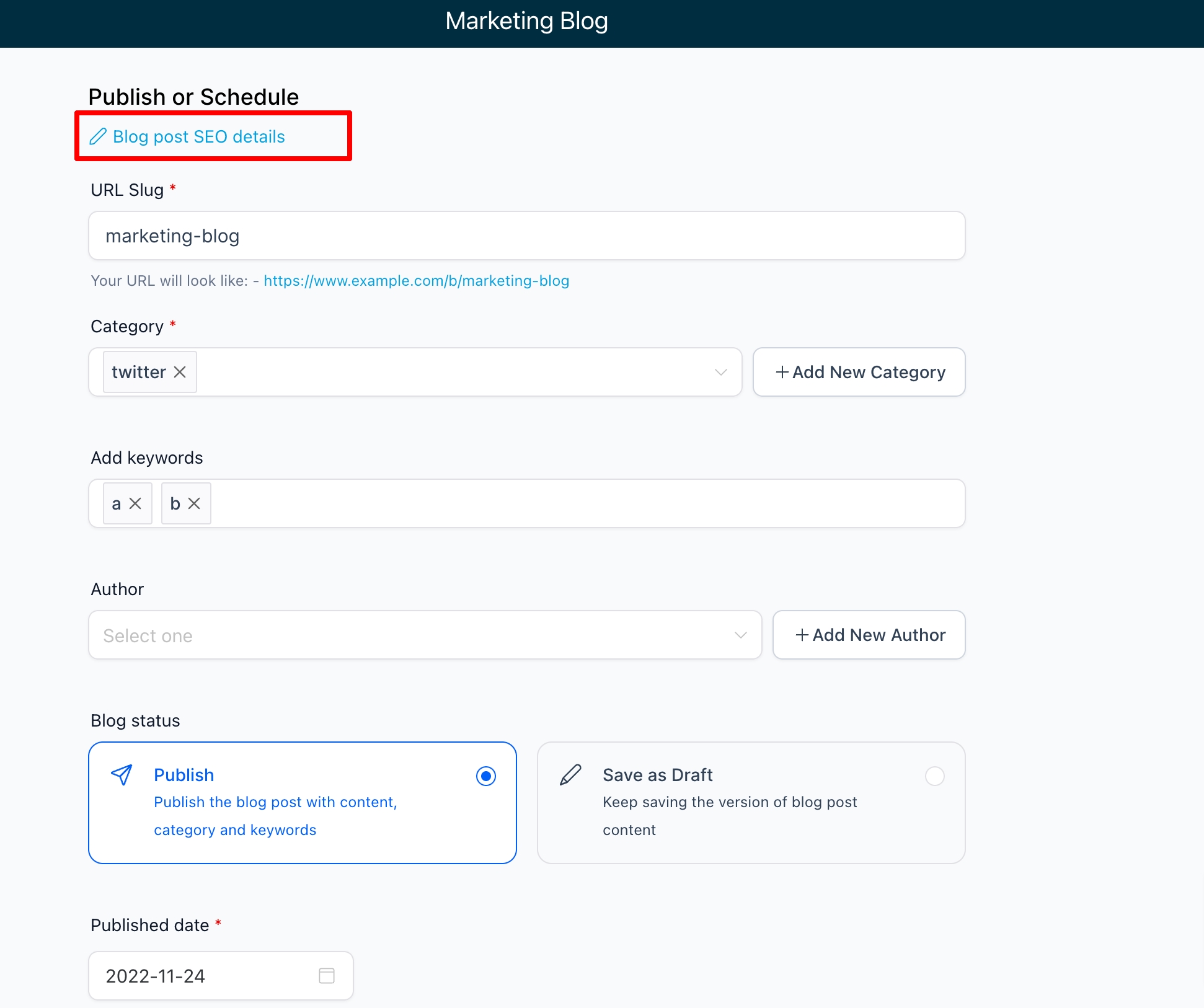 2. When Using the Blog Post Editor and Publish Screen: