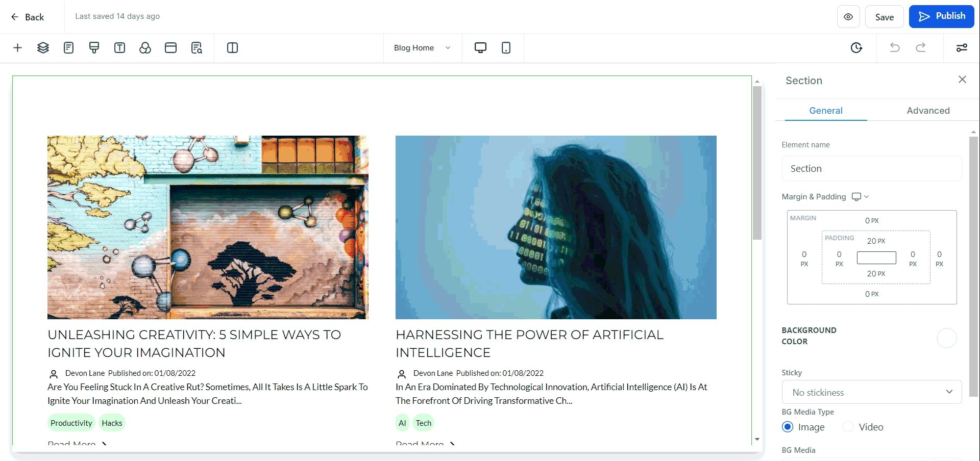 Section Templates & Global Sections in Blogs
