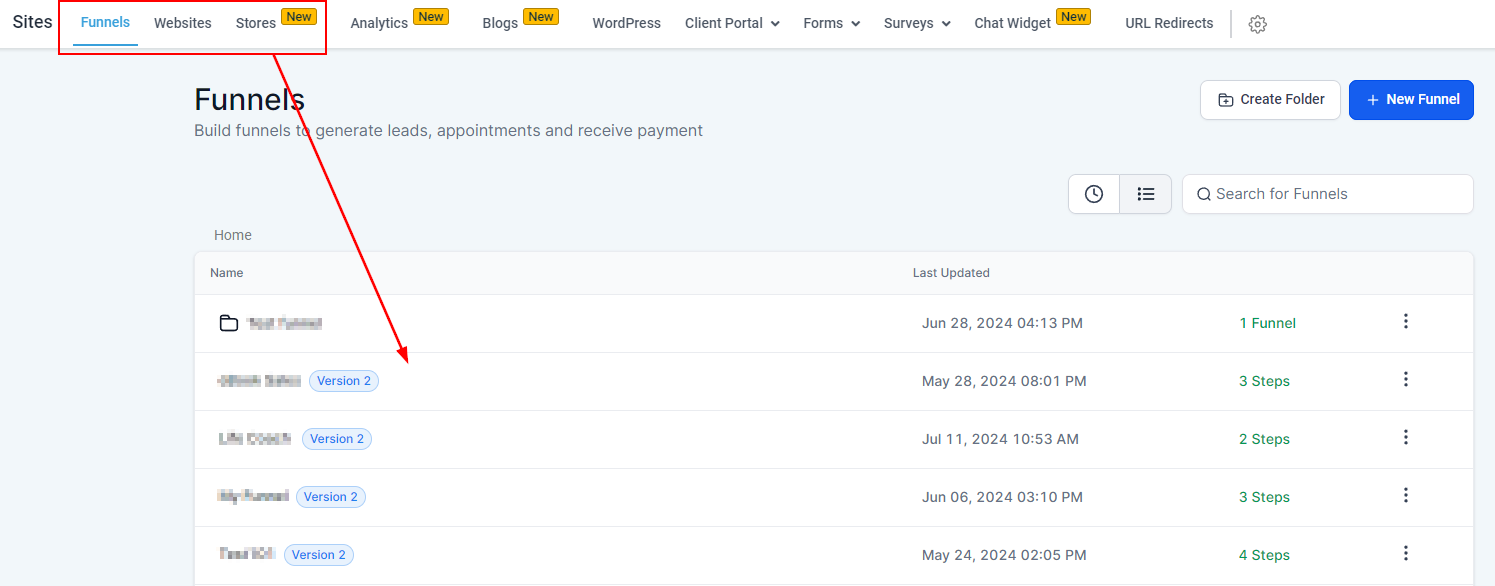 Inside the Funnel/Website general view select the Settings Tab