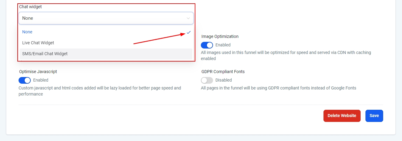 Once the Chat Widget is selected click Save to make it live. This will add it to your Funnel/Website according to its settings.