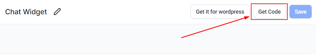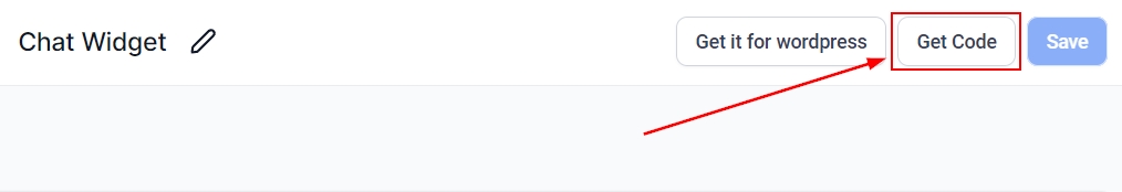 Inside the Chat Widget Builder click the Get Code button at the top right corner.