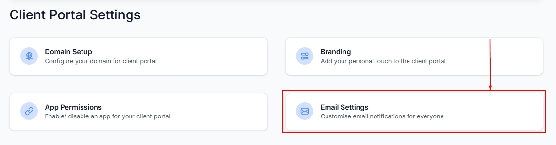 Client portal owners can enable or disable email notifications for specific child apps from a single interface.