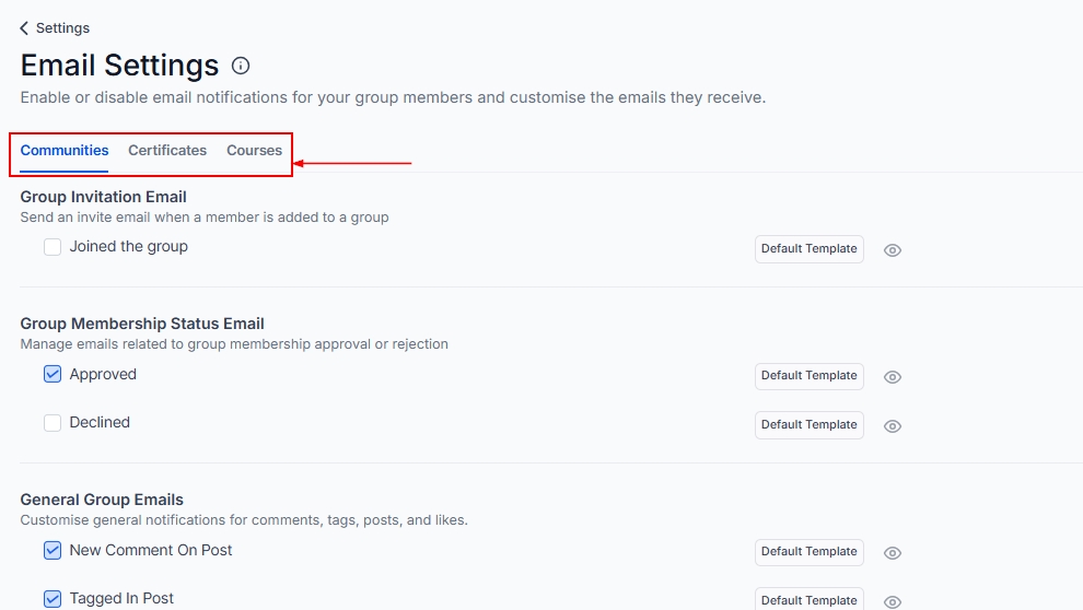 📌 NOTE: Some email notifications such as the community invite, and certification expiry notifications are essential and cannot be disabled.