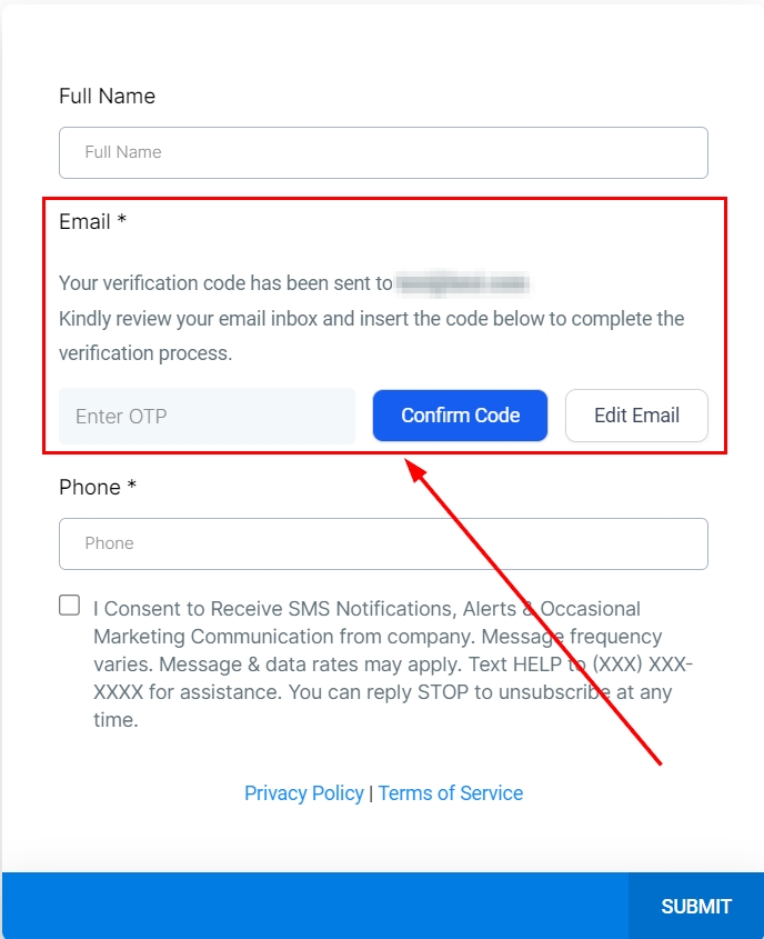 Upon entering a valid email, the “Verify Email” button will become visible.