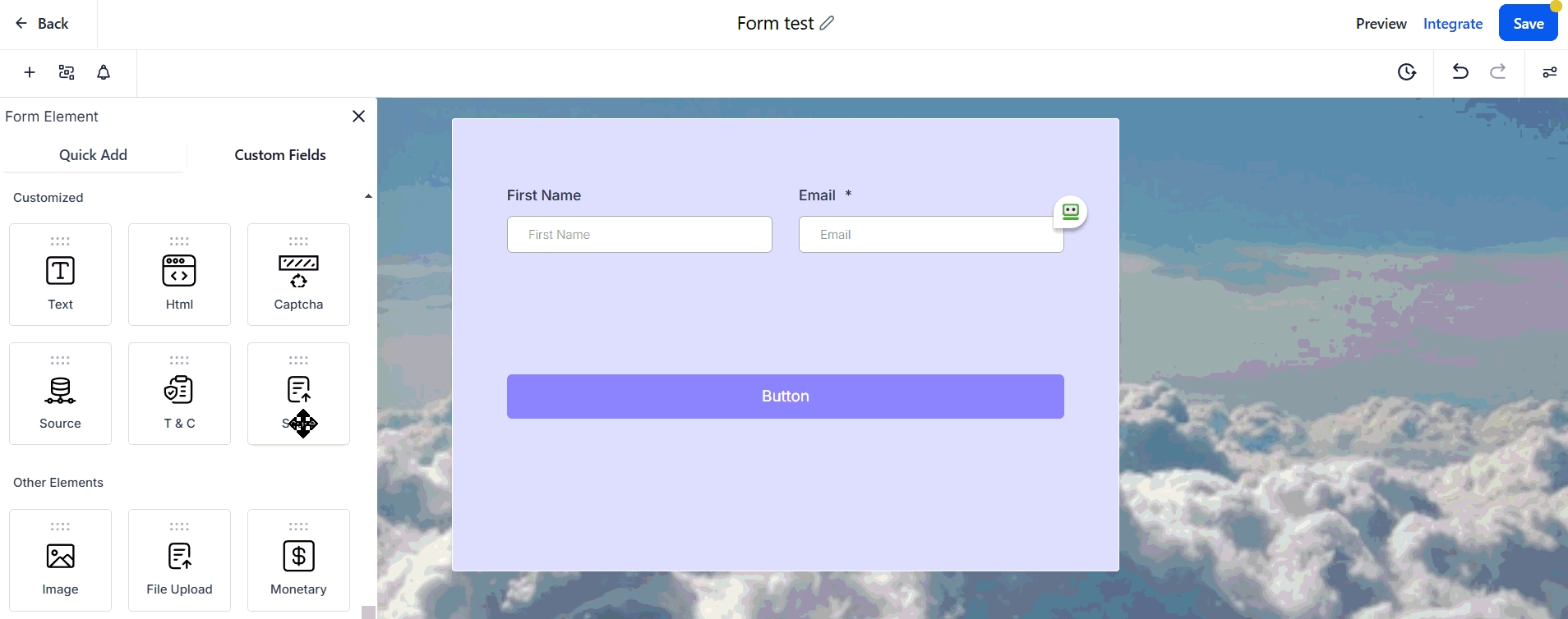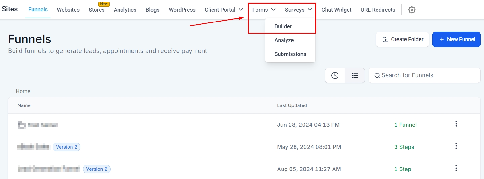 Navigate to the Form/Survey builder inside the Sites section.