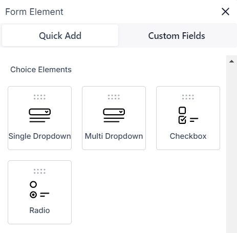 You can use this for numeric, monetary, and custom fields for Radio Select, Checkbox, Single Dropdown, and Multi Dropdown fields. To use these custom fields select them from the Quick Add menu.