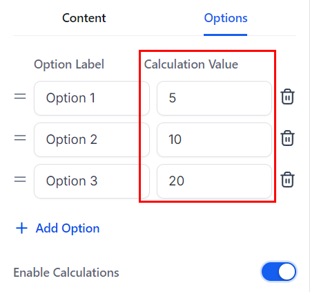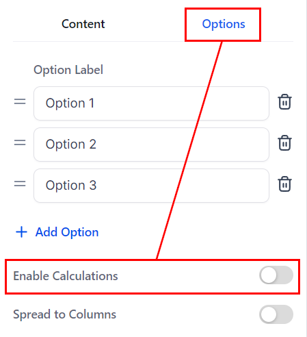 Click on the added element and go to the Options section where youโll toggle Enable Calculations.