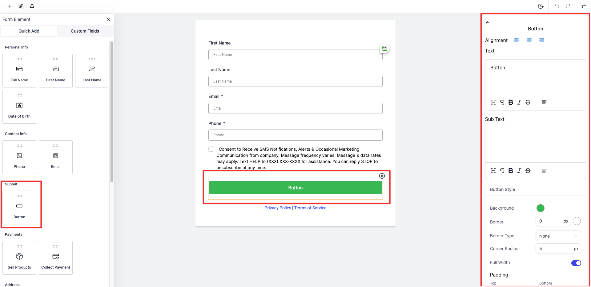Adding Essential Fields: Switch back to the Fields tab. Here, you can drag essential fields such as first name, last name, phone number, and email into your form. These are crucial for client identification and should be marked as required.