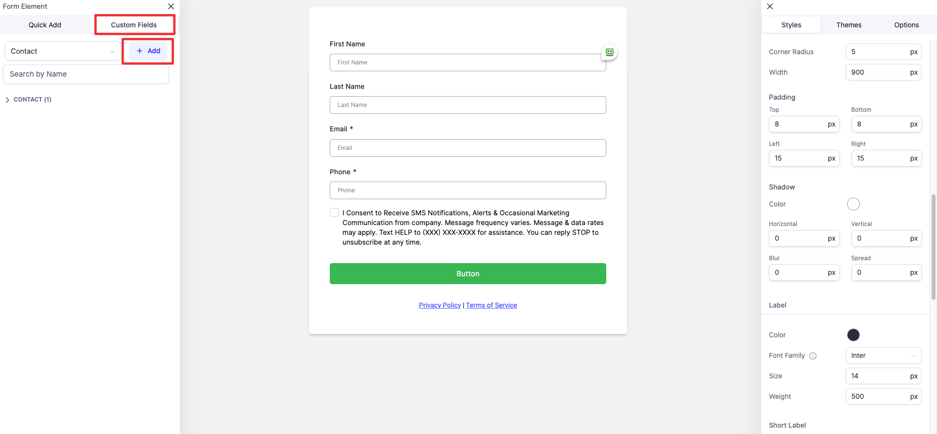 Customization Options: In the Styles tab, you have various options to customize your form's look, including background color, corner radius, and width.