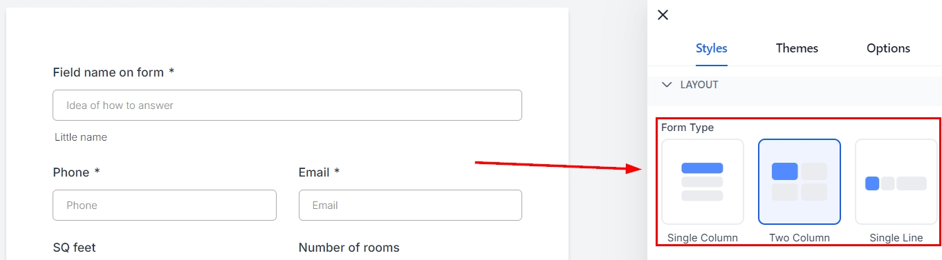 By clicking on the icon at the top right corner you can modify the look of your form further, starting with the way the fields will be spread across the form.