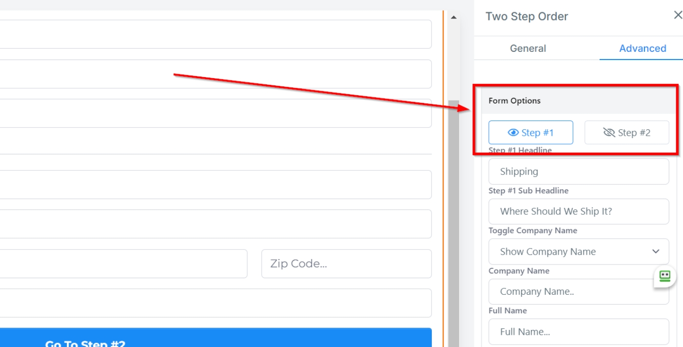 Select a Step: This option allows you to choose another step in your funnel/ website which the order form should display when submitted.