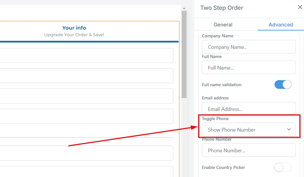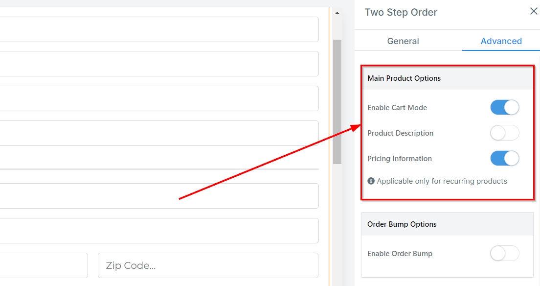 Pricing Information: Display the recurring and trial information by enabling this setting. This toggle is enabled for new funnels.