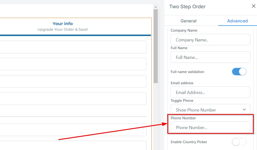 Enable Order Bump: Toggle this switch to enable order bumps to your order form.