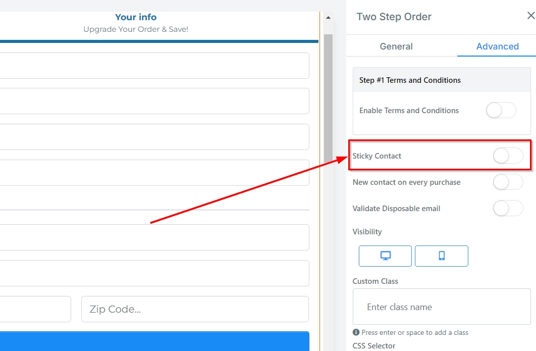 Toggle on or off to add or remove the sticky contact. When turned on, this will auto-fill the customer's information if their data was saved in the system.