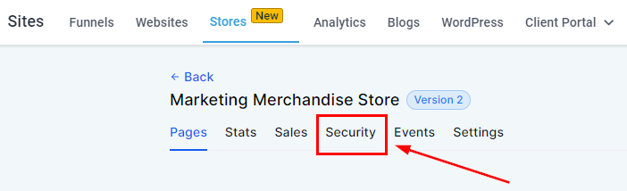 Within your selected Site, find and click on the Security tab.