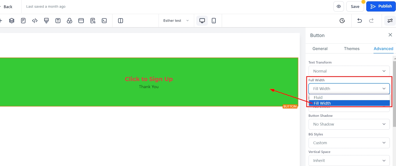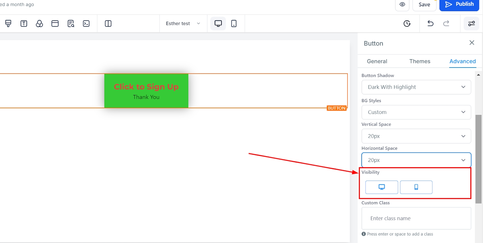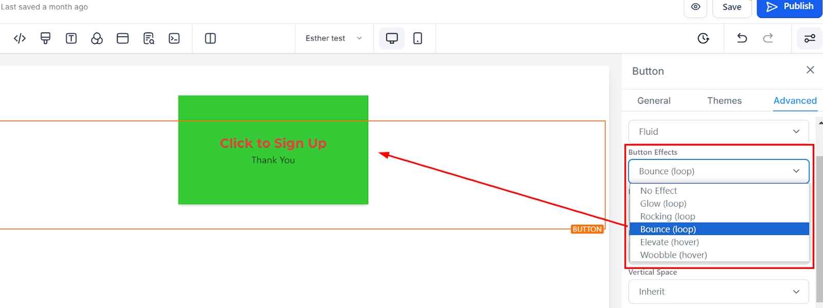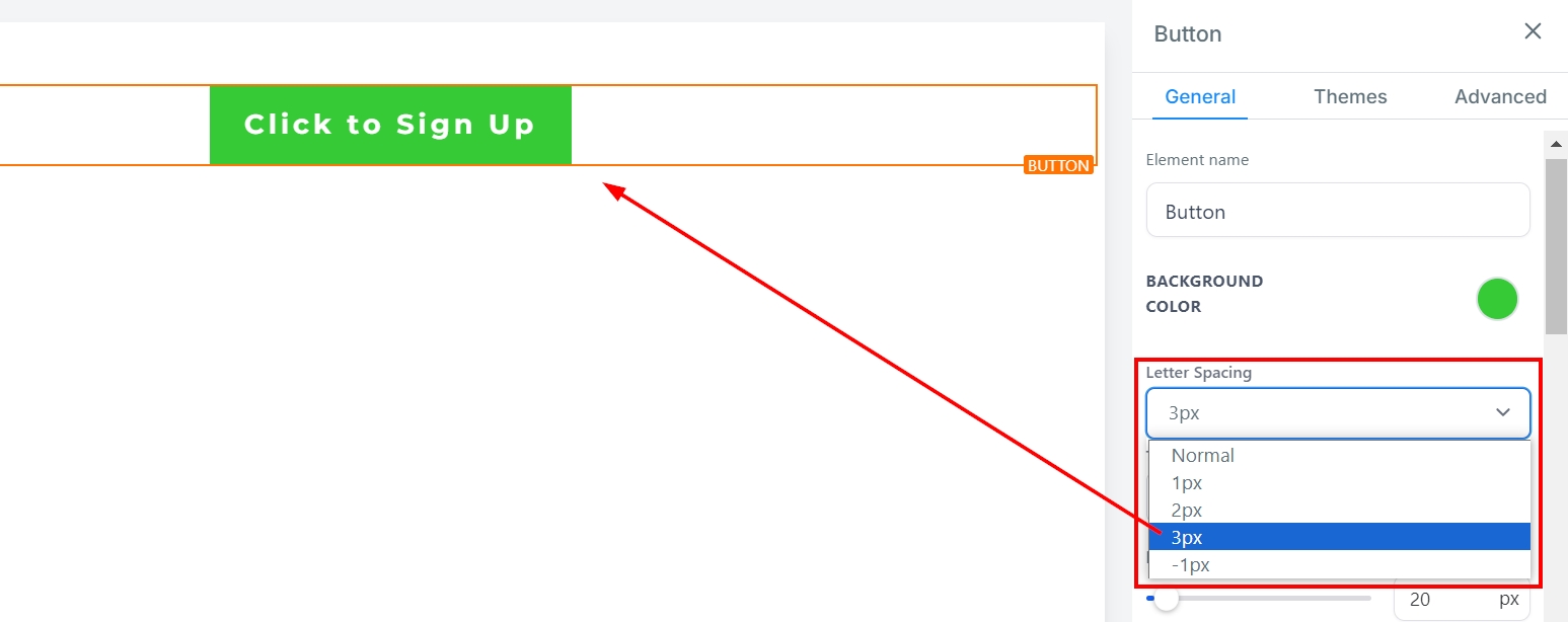 There are different spacing options available for adjusting your button. Depending on the Edit option you are working on, the settings will only apply to that option.