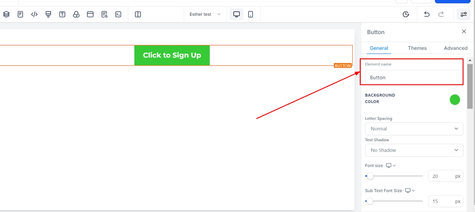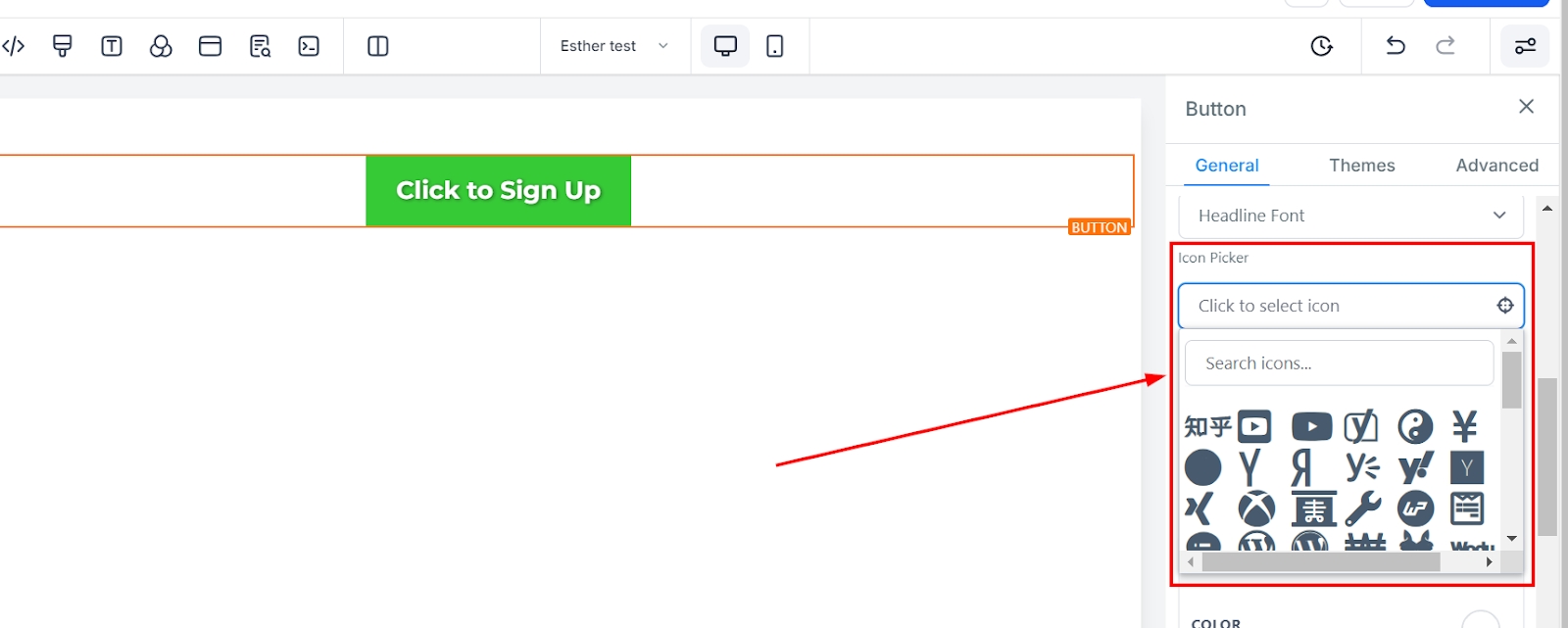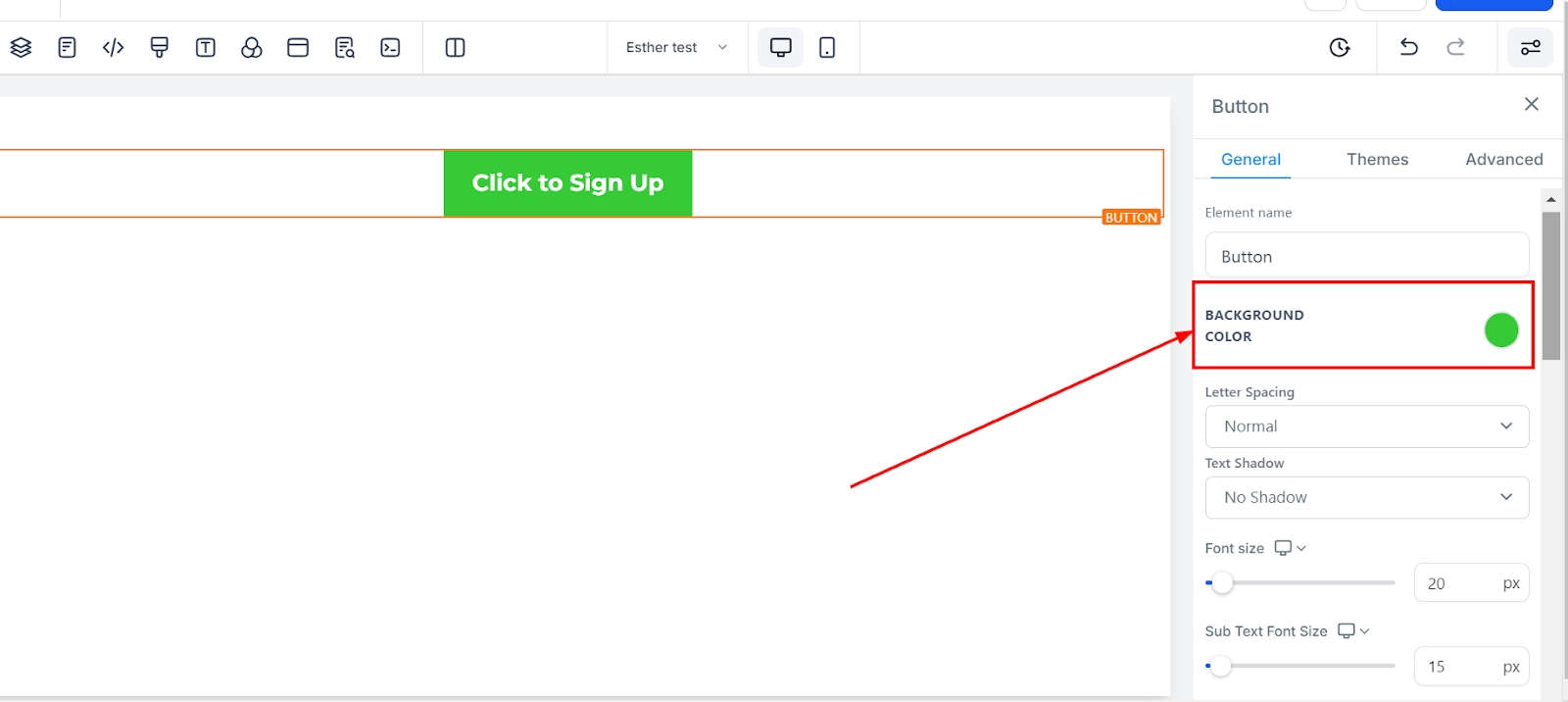 You can only adjust the text color in the button here, For example, the "Click to Signup" text
