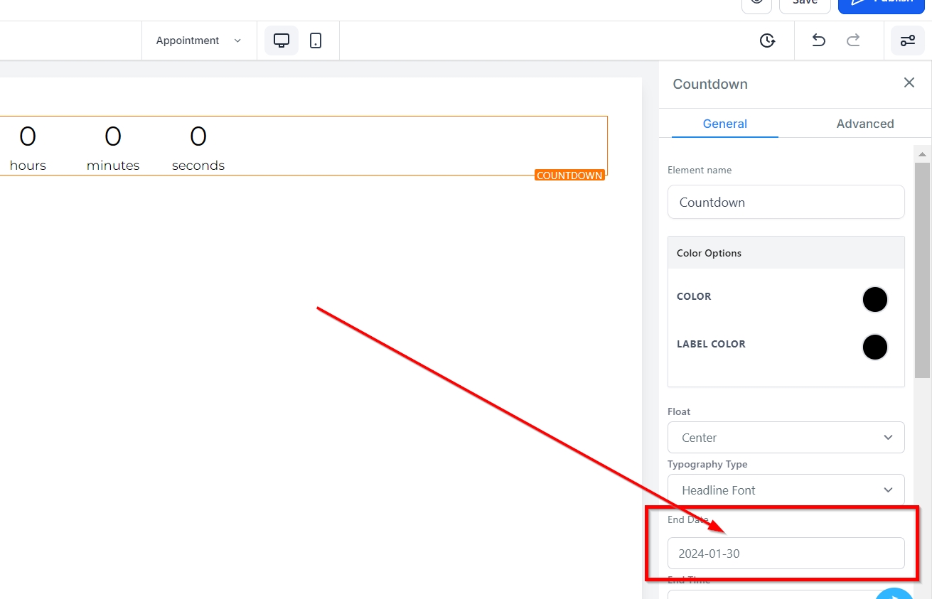 By using the End Date and Time feature, you can set a specific deadline for your countdown to reach its end. You can select your desired date and time using the available options. For example, you can set the countdown to end on July 11th at 6:00 AM. Markdown formatting is also available to customize the display.