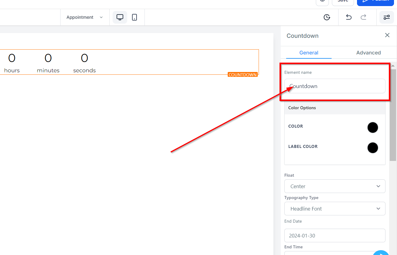 When using the General Settings feature, you will be presented with the default name/title of the currently selected Edit option. You can either leave the default name/title or modify it to better describe the element. Renaming the element is useful for when you have multiple elements in your funnel page and need to easily identify them.