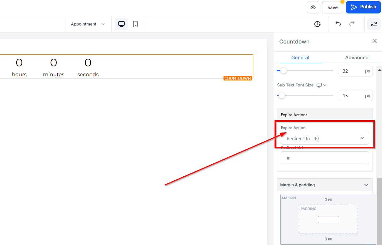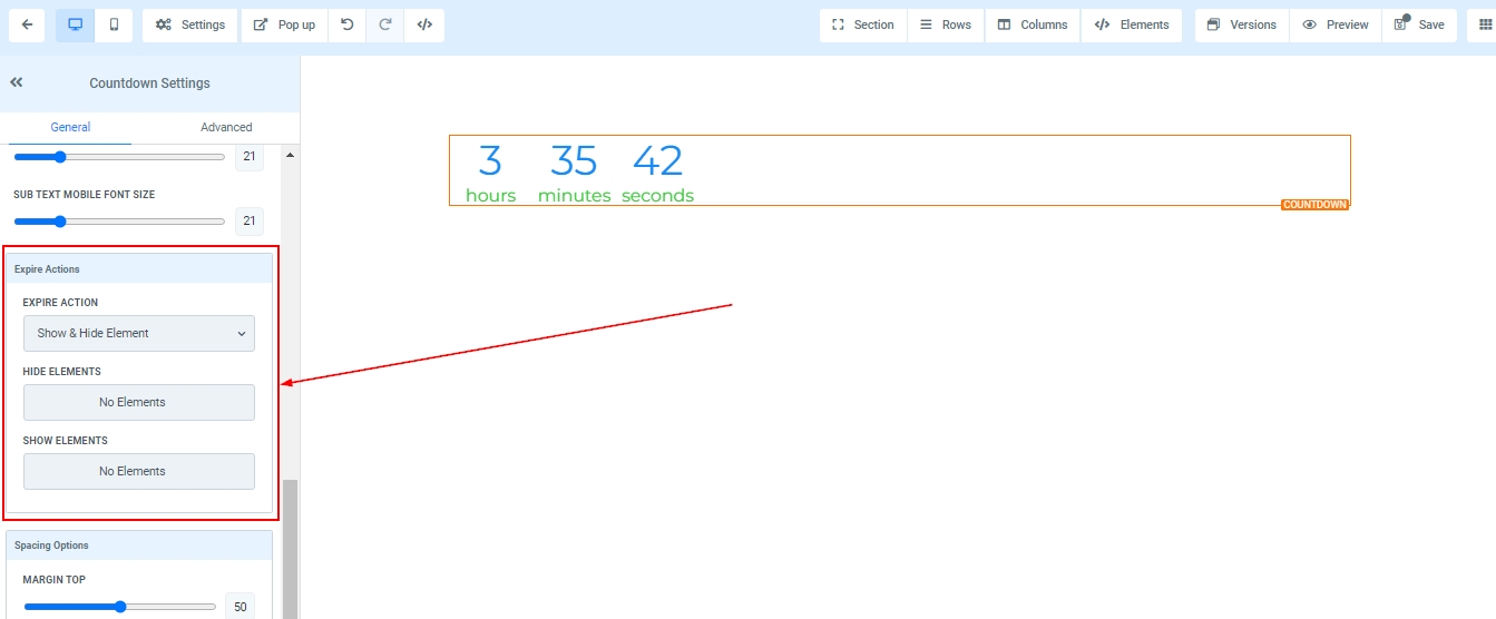 The Expire Action feature allows you to determine what happens after your countdown timer reaches its end.