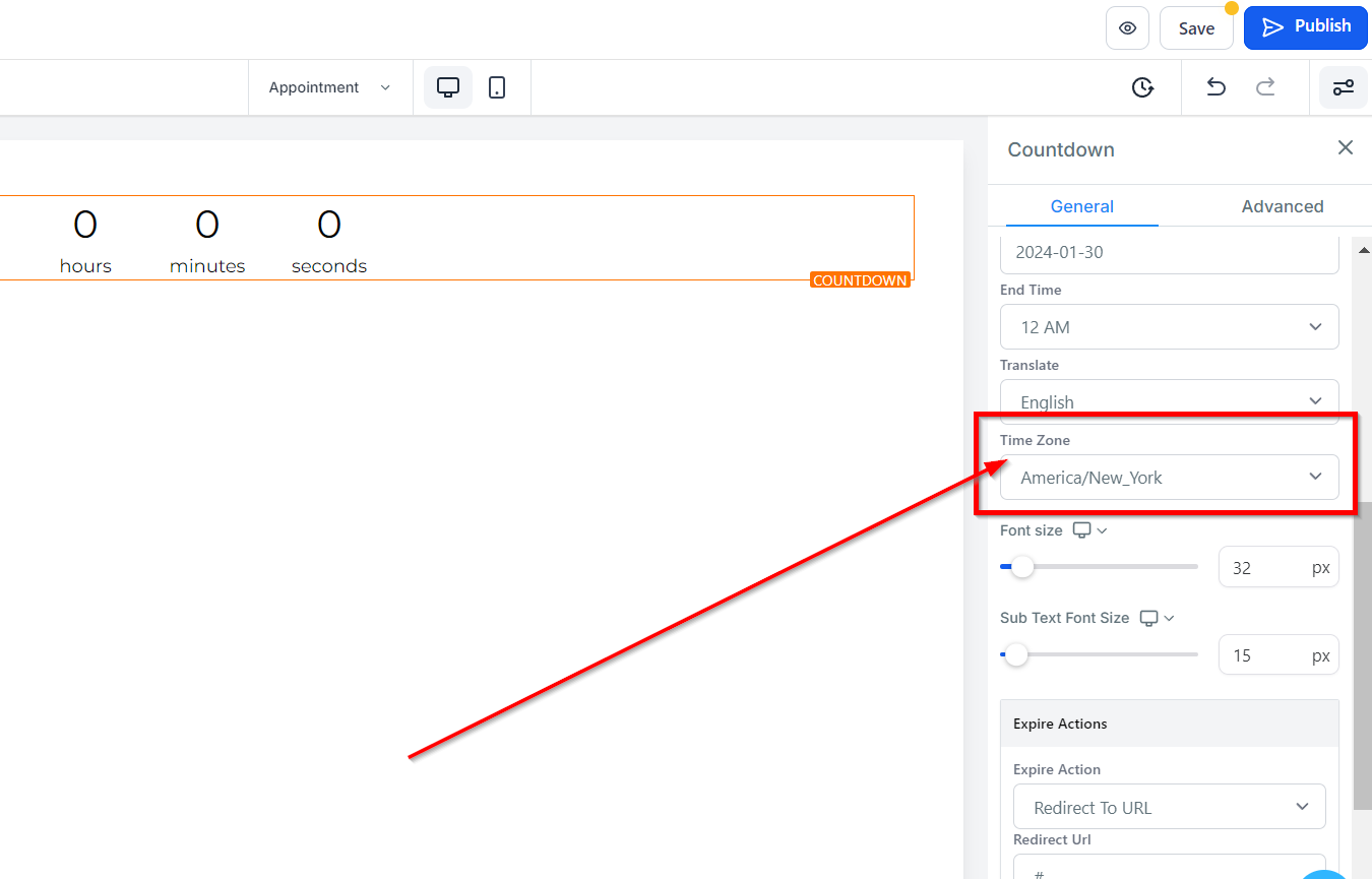 When setting up the countdown timer, you can choose the Time Zone that you want it to operate in. This allows you to ensure that the timer functions correctly for your location, and that it accurately counts down to the correct end time. You can select your preferred Time Zone using the available options, which include popular regions and countries. The Time Zone feature supports Markdown formatting for further customization.