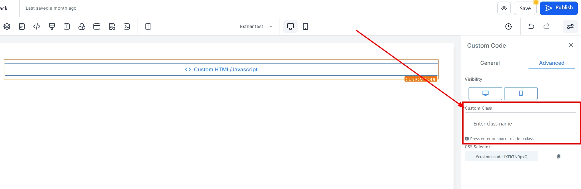 You can add a Custom Class to your web page by inputting your desired class name into the dedicated field. This feature helps you apply custom styles to specific elements of your web page by linking them to style definitions in a stylesheet.
