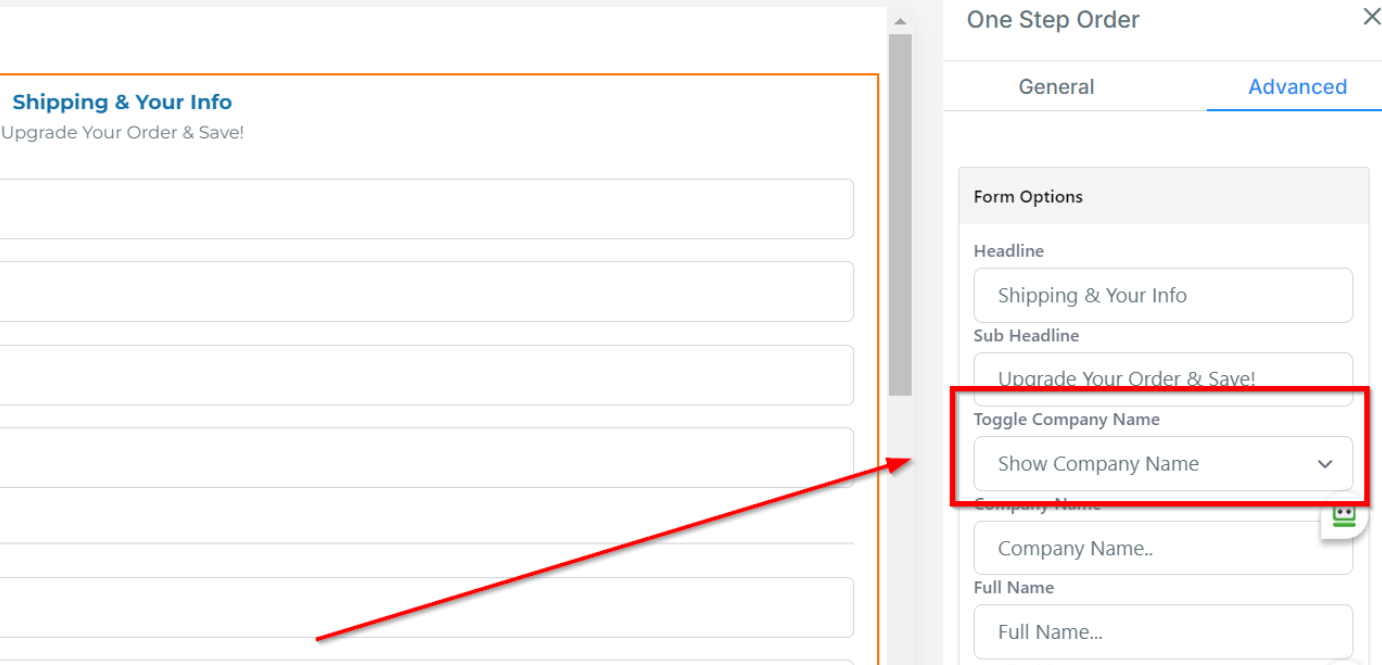 Customize Field Visibility:To hide the company name, click on "Toggle Company Name" field.
