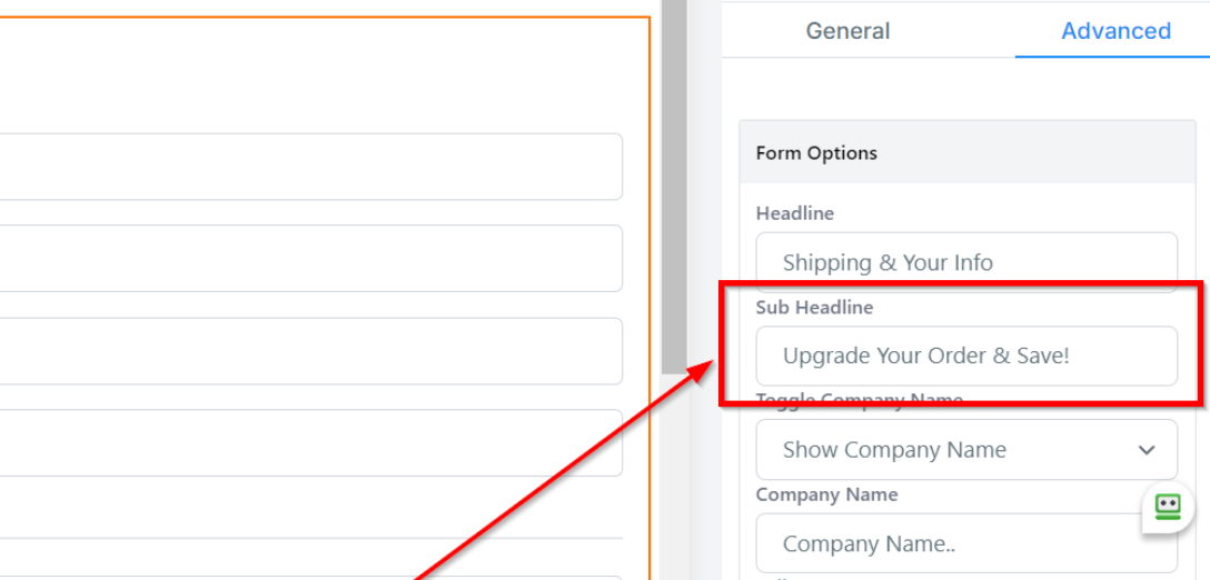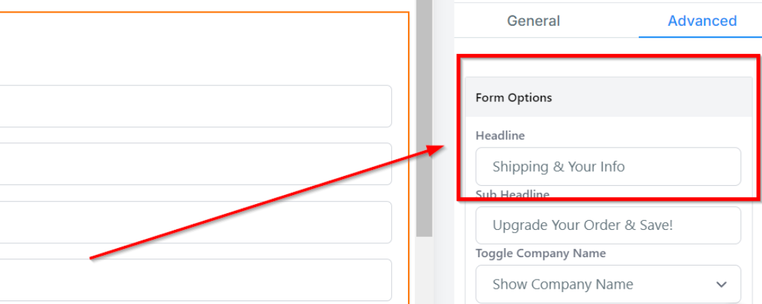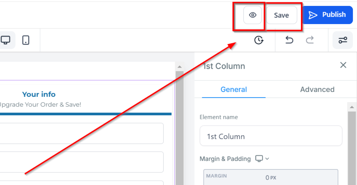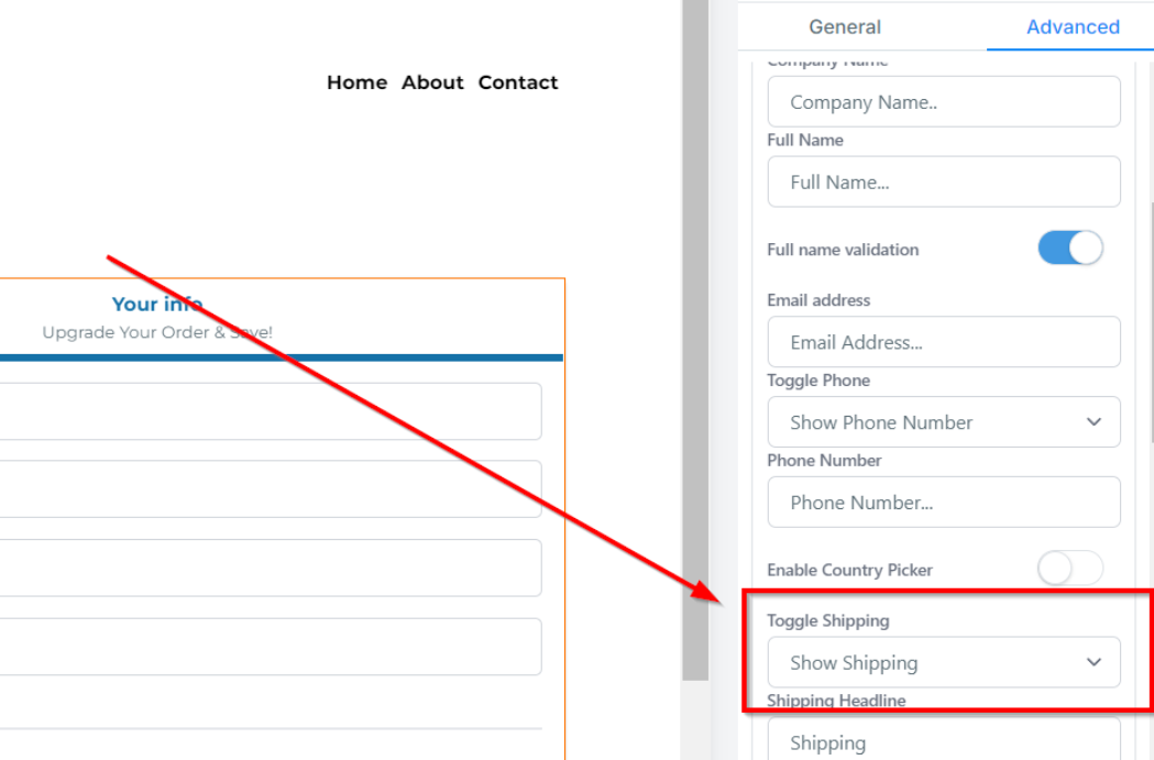 Access Advanced Settings: Click on the "Order Form" element, then select "Advanced Settings" from the menu.