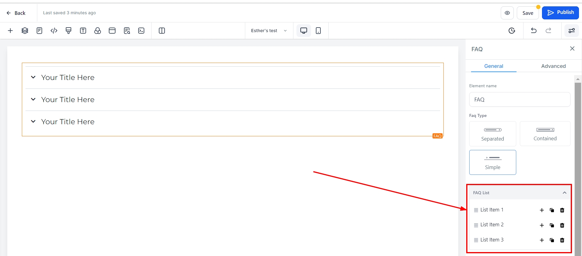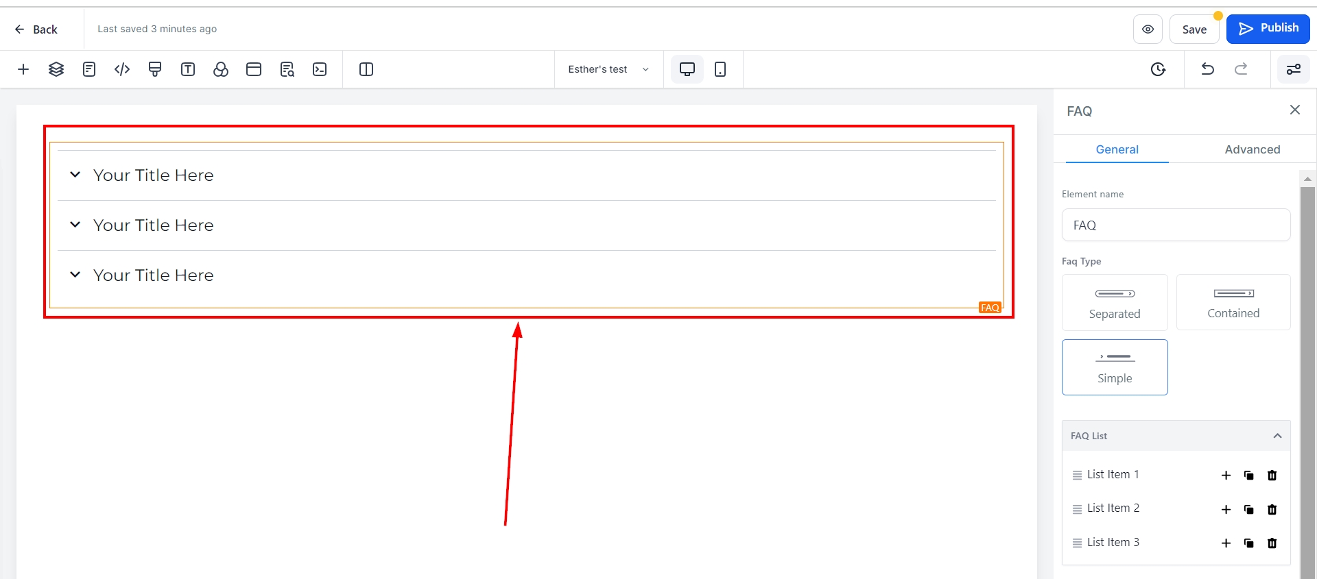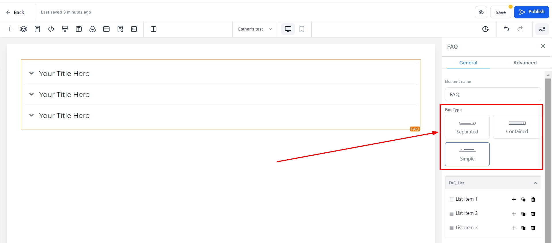 The FAQ Element allows you to create the look of your desired list. You have three options: Separate, Contained, and Simple Type.