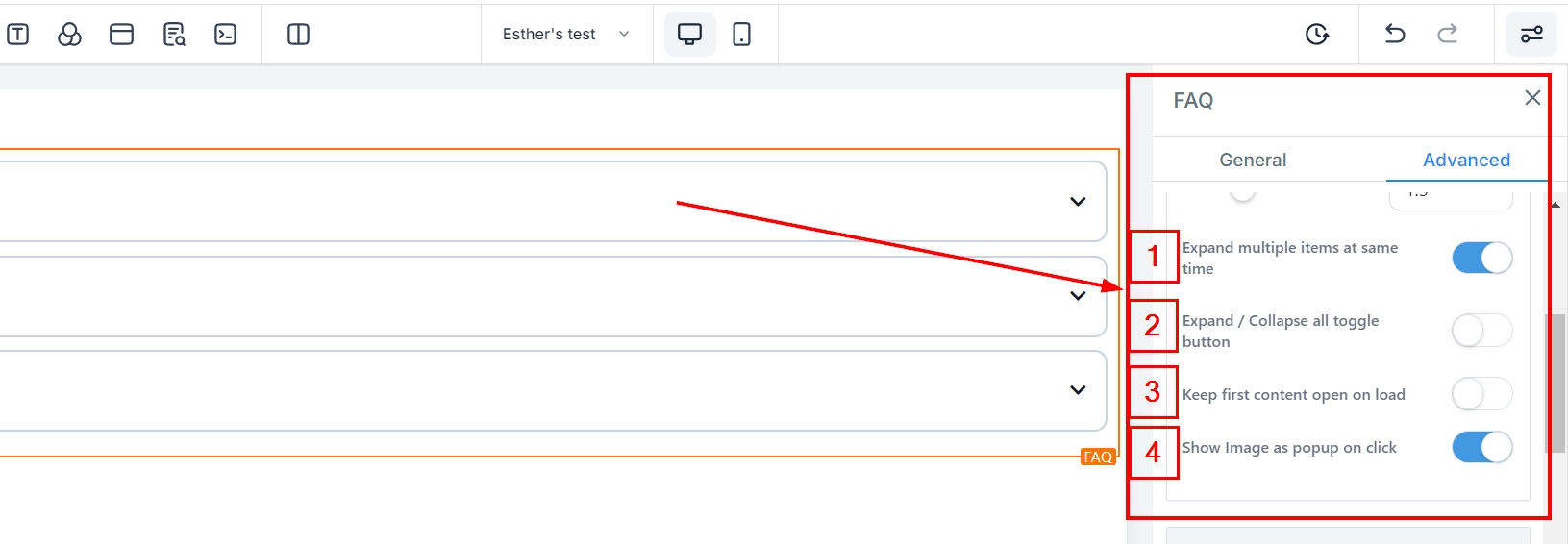 When you toggle on this button, it drops down the first list menu in the FAQ by default when a customer/visitor loads the page.